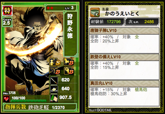 フル砲防でも槍砲混成でも使える狩野永徳さん、取引で見付けたら買ってあげてw