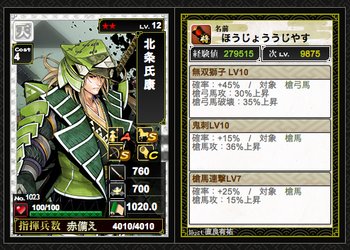 槍防でも使えるので当面売ることはないでしょうが、兵1剣豪が嫌らしいだけなので、指揮兵数アップは実装して貰いたいとこです。
