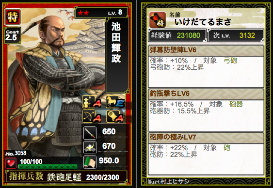 フル砲防でも槍砲混成でも使える狩野永徳さん、取引で見付けたら買ってあげてw