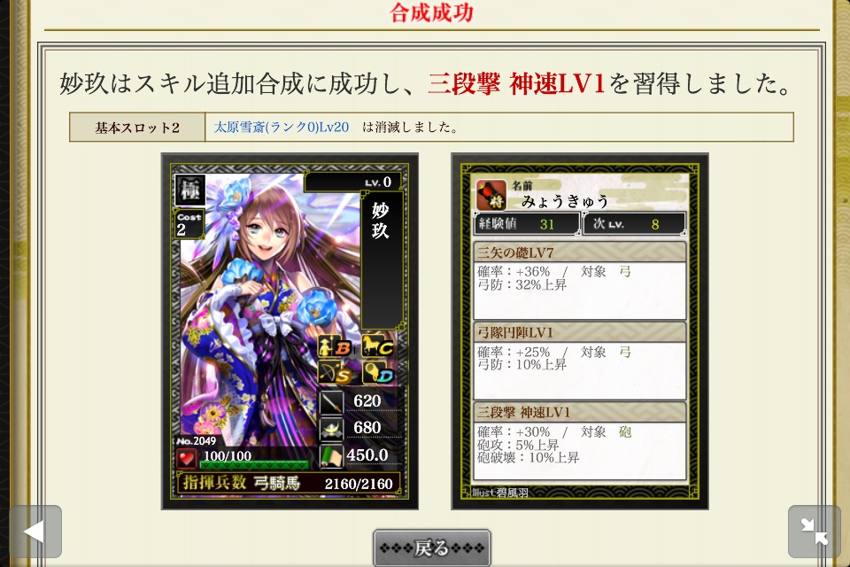弓陣の極みを2つ成功させたので、素材にします。