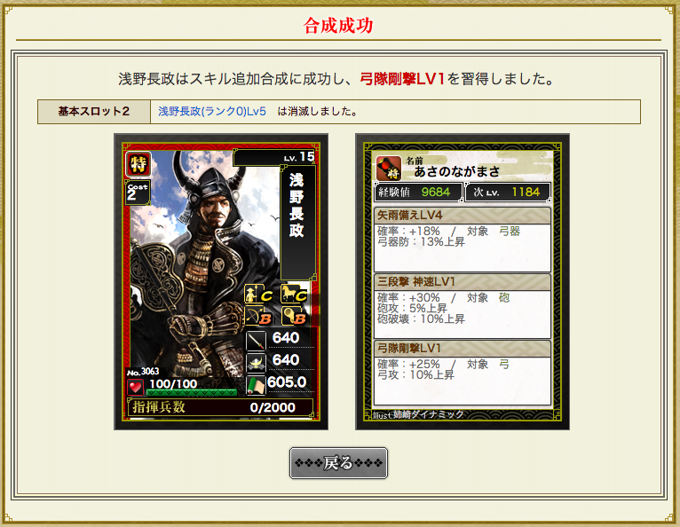 しかし、できれば天に付けたかったスキルですなコレ。電光義兵の旧天浅井さんとスキル入れ替えたい。。。