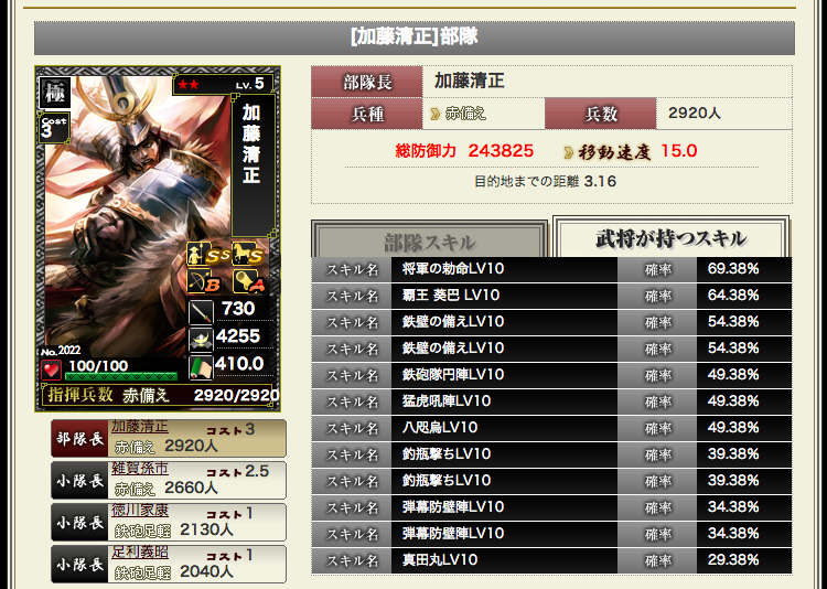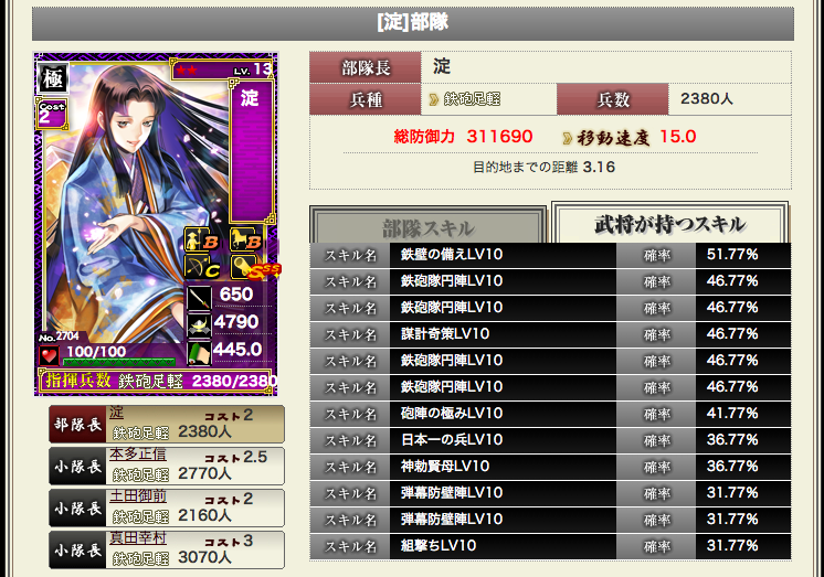 複合対応で真田丸&鉄壁でまとめてるのも不利なんだけど、このレベルになると強スキル+良コスパの両方持ちじゃないとちょっと見劣りします。