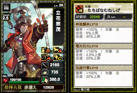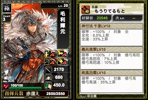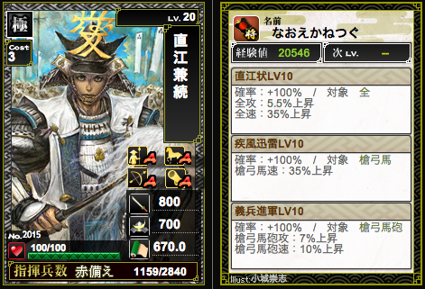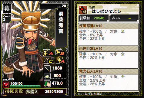 ランクアップによる兵増加がまさかの一律+100ということで、ランク上げるほどに低コスト武将のコス比がパネえ感じに。