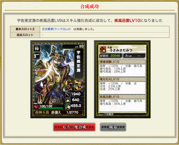 廃の人は追加スキル枠に騎神とか神速とかの領域に行き着いたり、最速武将早雲さん持ってたりするんでしょうが、そこまでいかないのが廃さんとの壁でw